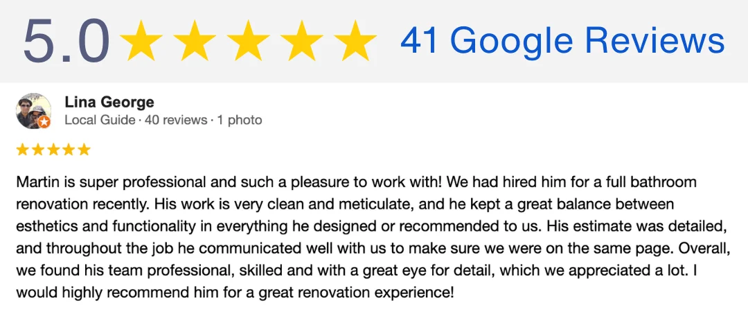 Transparency is key. We provide a detailed project estimate, outlining everything from materials and labor to removals and upgrades—ensuring your renovation aligns with your budget.